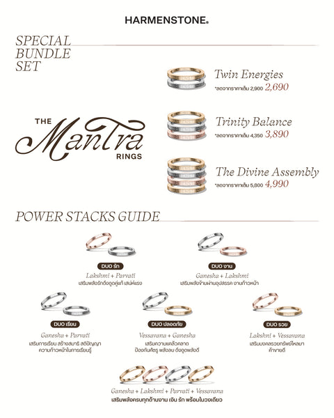 Wear multiple Mantra Rings together to amplify your energy. Combine the divine powers for success, wealth, love, and protection.